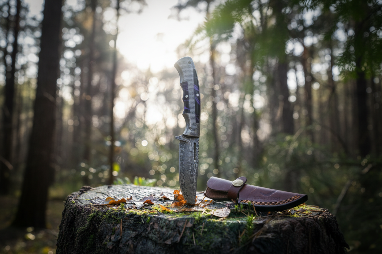 Discover hand-forged knives crafted from premium high-carbon steel — including Damascus masterpieces — built for unmatched strength, razor-sharp precision, and every adventure from hunting to kitchen use.